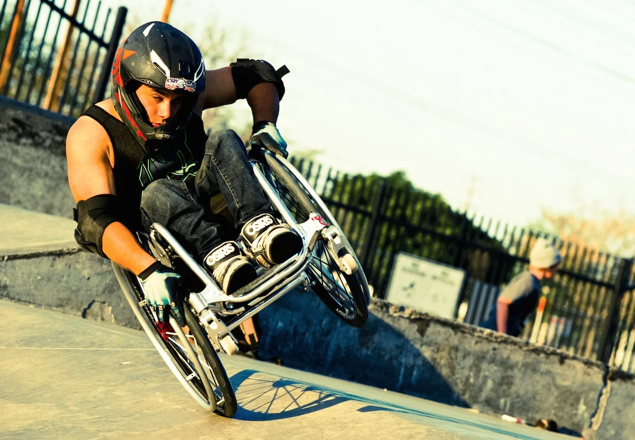 Aaron “Wheelz” Fotheringham is a 23 year-old wheelchair moto-cross athlete from Las Vegas, Nevada. Aaron was born with Spina Bifida, which resulted in him having no usage of his legs. He is the third of six children, all adopted. Aaron never let anything stop him. Even as a baby and small child, he did anything anyone else his age could do; he just had to figure out how to make it work for him. He rolled over, sat up, and even crawled (on hands and belly, no leg action) pretty much on schedule. Within days of receiving his first “walker” he was off and running. Next came crutches, which he mastered quickly. He would put on a “Superman” cape and blast down the hell on crutches believing, as any other 4 year old, that he could fly. Aaron started riding at skate parks at the age of 8 when his older brother Brian said he should drop in a quarter pipe. He had been going to the park with Brian and their dad for weeks, but Aaron would just watch from behind the fence. The first time was scary, and he fell, but he was never one to give up just because it wasn’t easy. So he tried again. From then on he was hooked. He has won a few BMC freestyle competitions, including the 2005 Vegas AmJam BMX finals, but for Aaron that is secondary to the joy of riding and hanging out with his friends at the skate parks. Over the last eight years Aaron has challenged himself to try progressively more difficult tricks; carving, grinding, power-sliding, hand planting, and spinning are just a few of his accomplishments. In 2005, he perfected a mid air 180-degree turn. Then on July 13th, 2006, he landed the first wheelchair back flip. Four years later, at a camp in Woodward, he landed the first ever double back flip (August 26, 2010). Since then, he has gone on to perform it live while touring with the Nitro Circus. As if this is not enough, on February 9th, 2011, he landed his very first front flip in New Zealand, and on August 25, 2012, he shocked Brazilians by jumping and successfully landing a 50-ft gap off of the Mega Ramp in his chair. After posting that “first ever back flip” on the Internet, life has changed for Aaron; he has had the opportunity to travel within the US, as well as internationally, performing and speaking in front of many. He has attended summer camps for disabled children as a coach/mentor. He has been featured in magazines, newspapers, and sports television. He receives and responds to e-mails from all over the world. Aaron enjoys showing young kids with disabilities that a wheelchair can be a toy, not a restriction. He loves helping younger children learn how to handle their chairs in new and different ways and teaching them a trick or two. Someday he hopes to design “the most wicked” chair in the world. Aaron has a passion for what he does, not only is it a lot of fun, but he wants to change the world’s perception of people in wheelchairs, as well as help everyone see his/her own challenges in a new way. Aaron’s appeal is universal. You certainly do not have to be disabled to be inspired by what he is able to do.